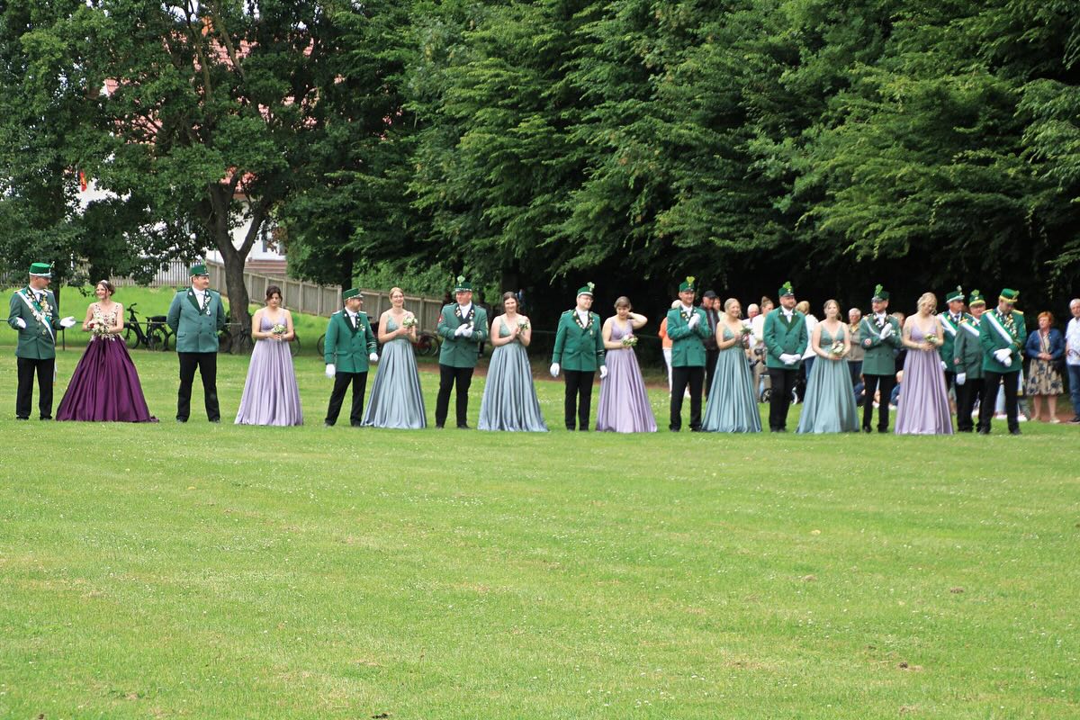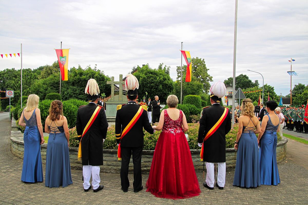 Das war unser Schützenfest Sonntag! 🤩 Nach dem Antreten in der Schützenhalle und der Festandacht an der Kirche ging es zur Kaiserresidenz. Dort wurden die Kaiserin und der Hofstaat abgeholt. 👑 Anschließend ging es zur Kranzniederlegung am Ehrenmal. Danach marschierten wir auf den Sportplatz, wo die große Parade stattfand. Ein besonderes Highlight waren die Gastvereine @schuetzenverein_sande_1922 @schuetzenverein_husen @schuetzenverein_helmern , die beim Marschieren und der Parade dabei waren. 🫡