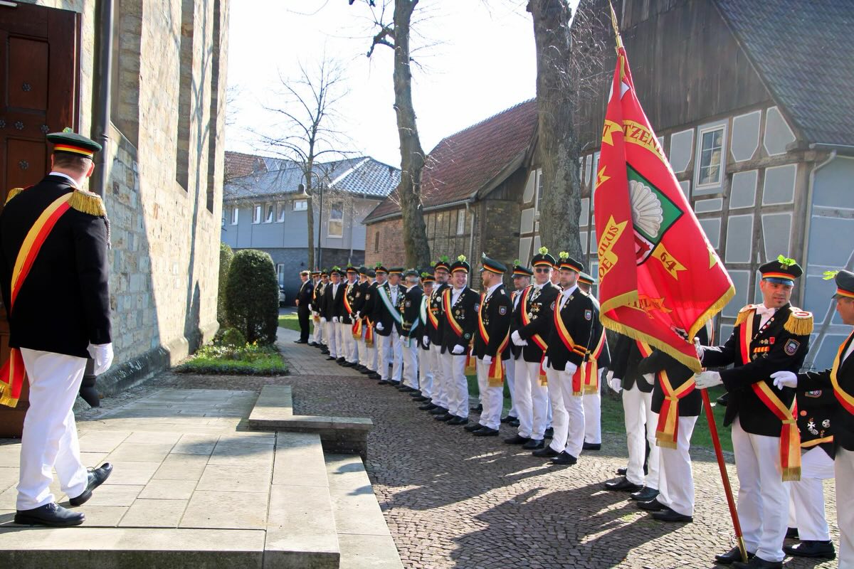 Wir sind um 08:40 Uhr an der Schützenhalle angetreten und zur Kirche marschiert. Dort wurde die heilige Messe von Diözesanpräses Thomas Stolz gefeiert.